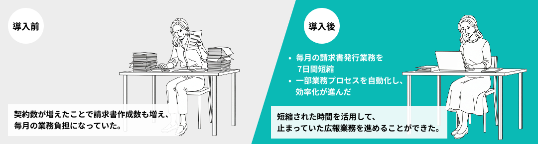 以前は毎日処理していた業務が、他の業務との兼ね合いで月に3日程度しか時間を確保できず、提出期限直前に慌てて処理することもありました。現在は計画的に業務を進められるようになり、心理的な負担も軽減されています。
